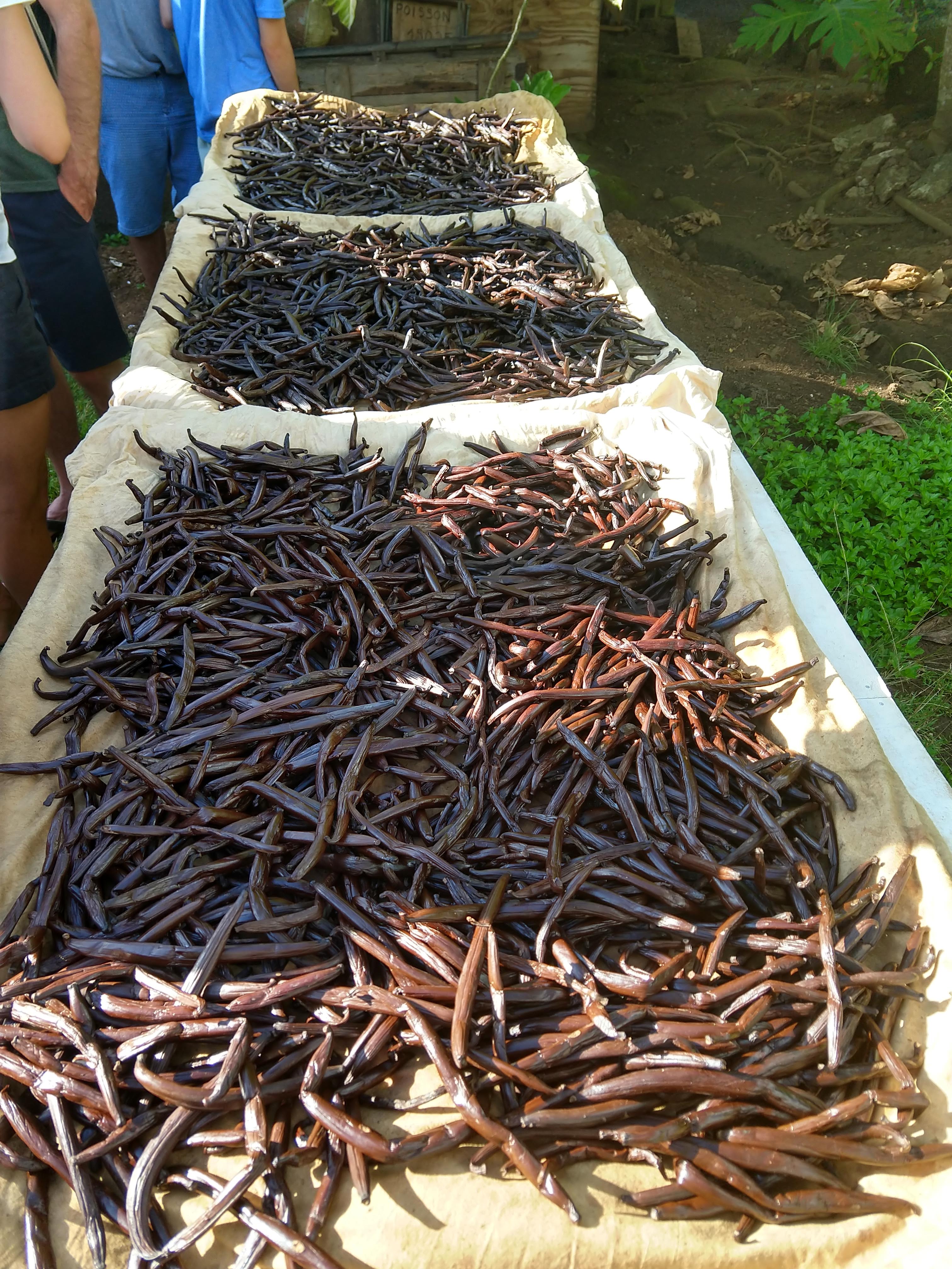 Pods nearly ready for sale whole, or for transport to Tahiti for processing into extract.
