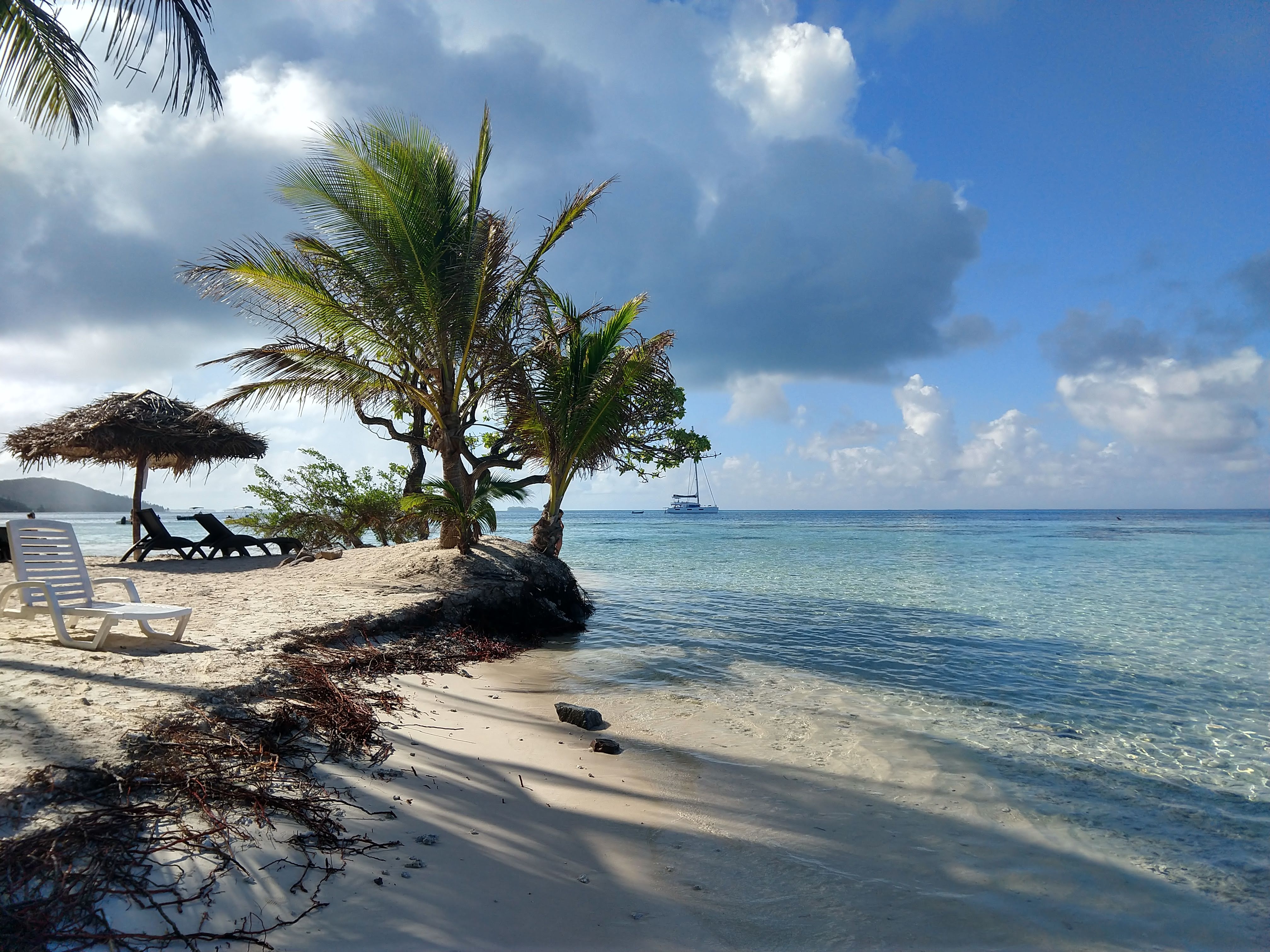 I awoke to no breeze in the palm trees. Yay! I checked in and was told that the boat would leave at 11:45am. Yoga and a bike ride around the island were therefore in order.