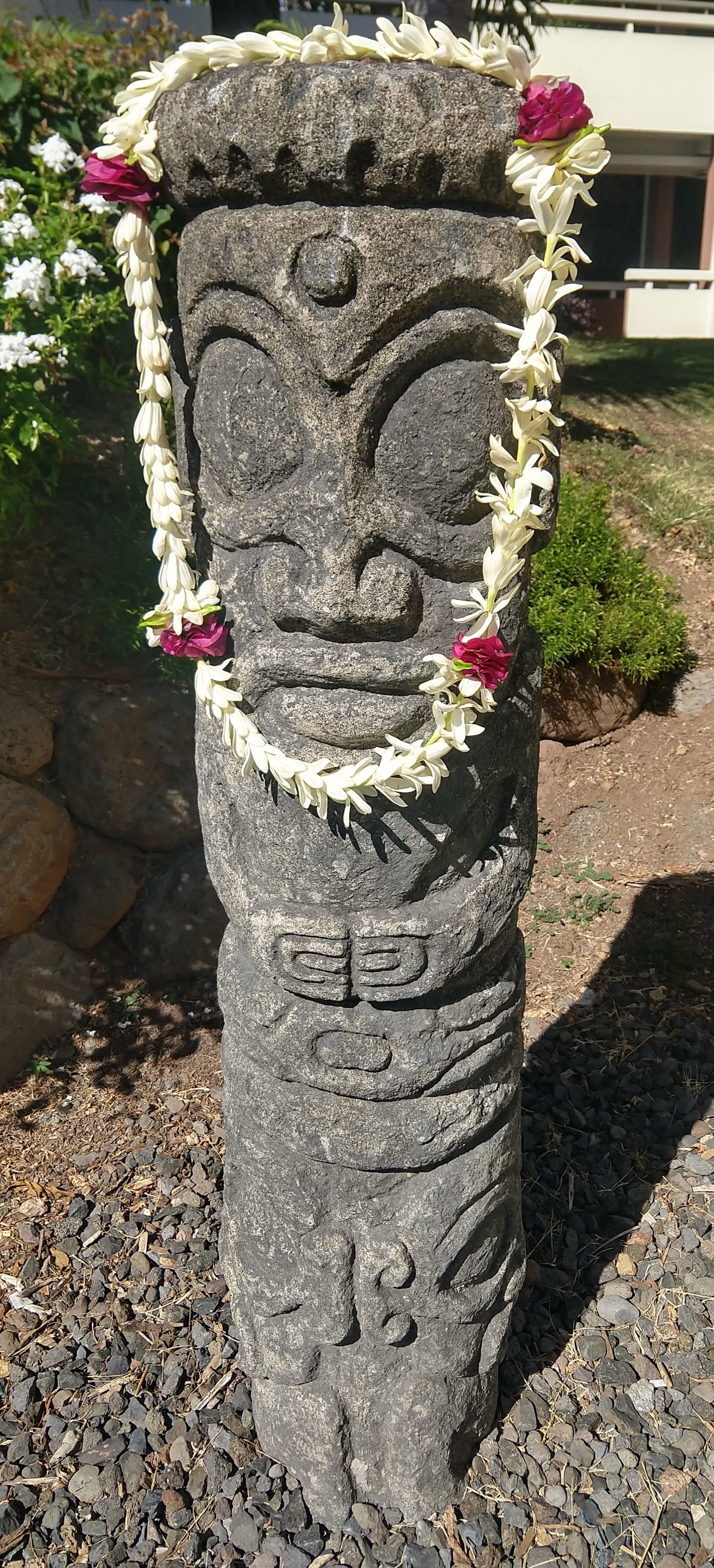 I couldn’t resist temporarily decorating one of the tikis. I hope he enjoyed the heady scent of those tiare flowers as much as I did.