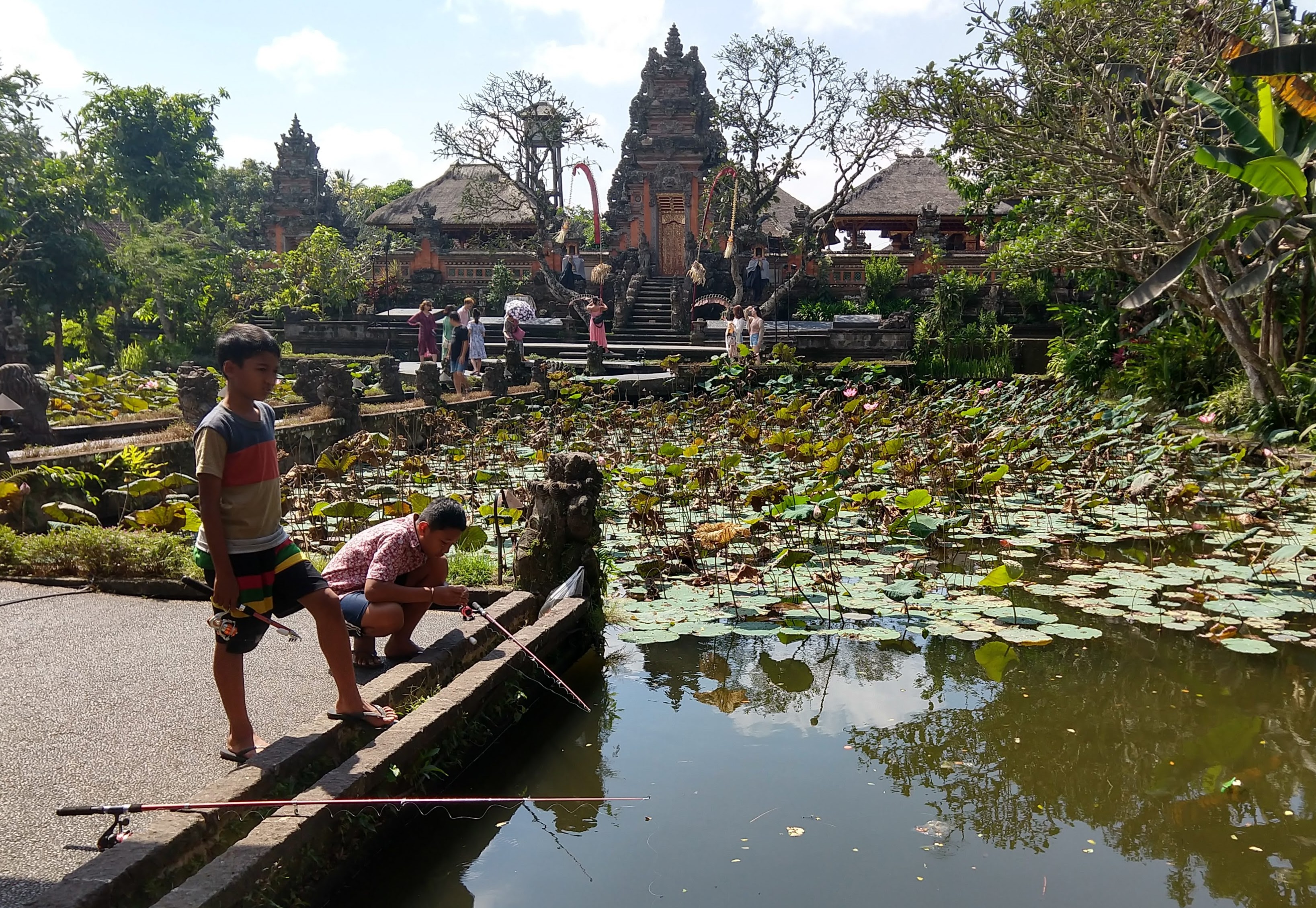 I was surprised, then amused, by the boys fishing at Saraswati Temple.