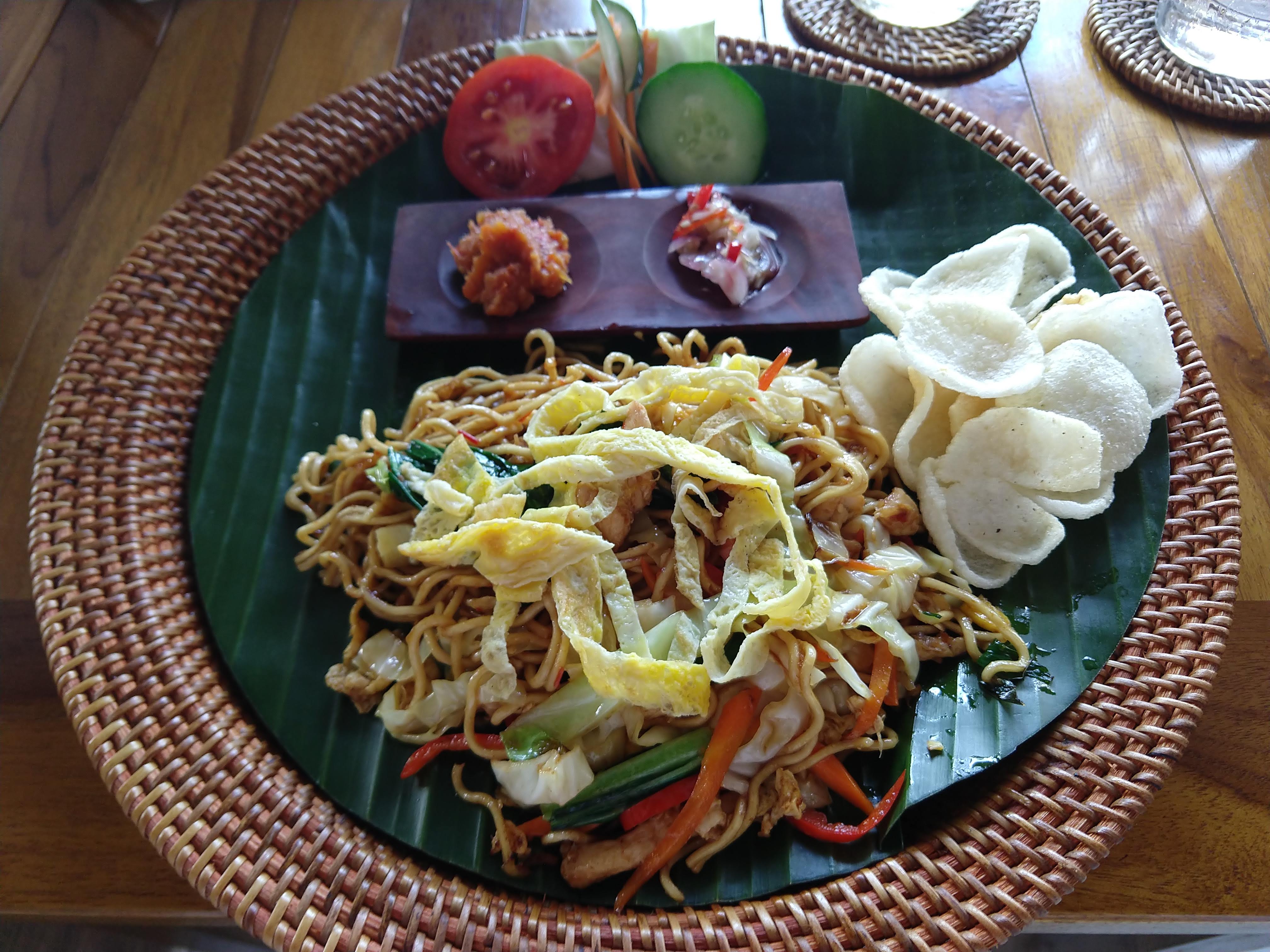 I ducked into Ubud’s Warung Colada for the Indonesian stir fried noodles known as mie goreng. Yes, about seven tables is average, and I watched them prepare the meal.