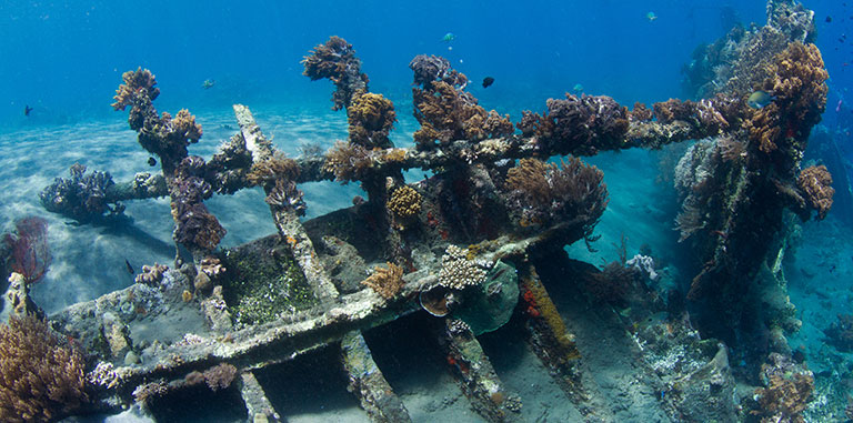 The unexpected delay was over, and it turned out to be a fun adventure. The day ended with another boat ride, this time in a jukung, to snorkel the Japanese wreck with new neighbors Kiley and Felix from Perth.